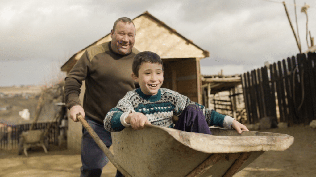 Thanks to your generosity, Nelu’s spending his childhood with his siblings. Playing cards together, hide and seek, feeding their animals, and playing on their uncle’s wheelbarrow.