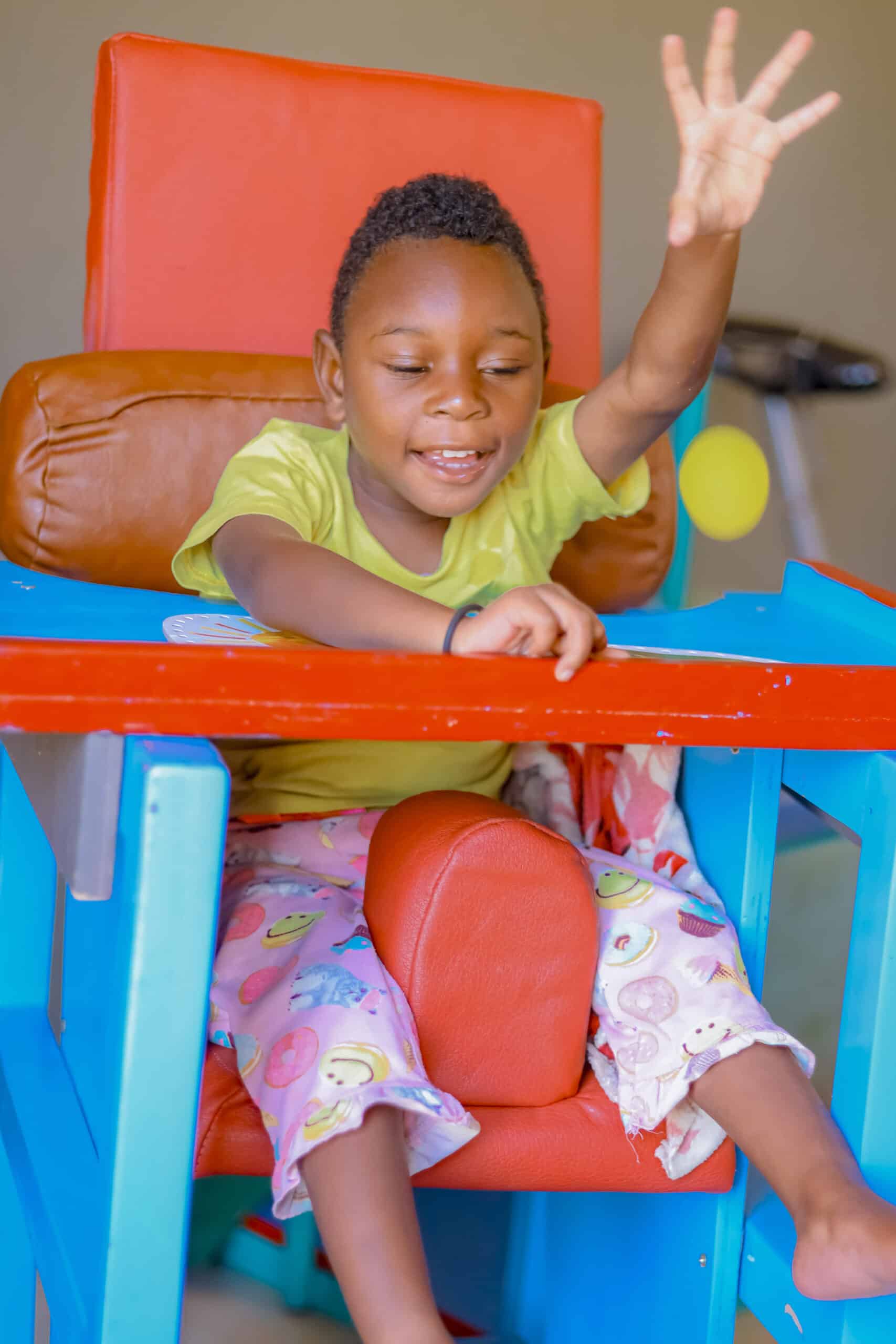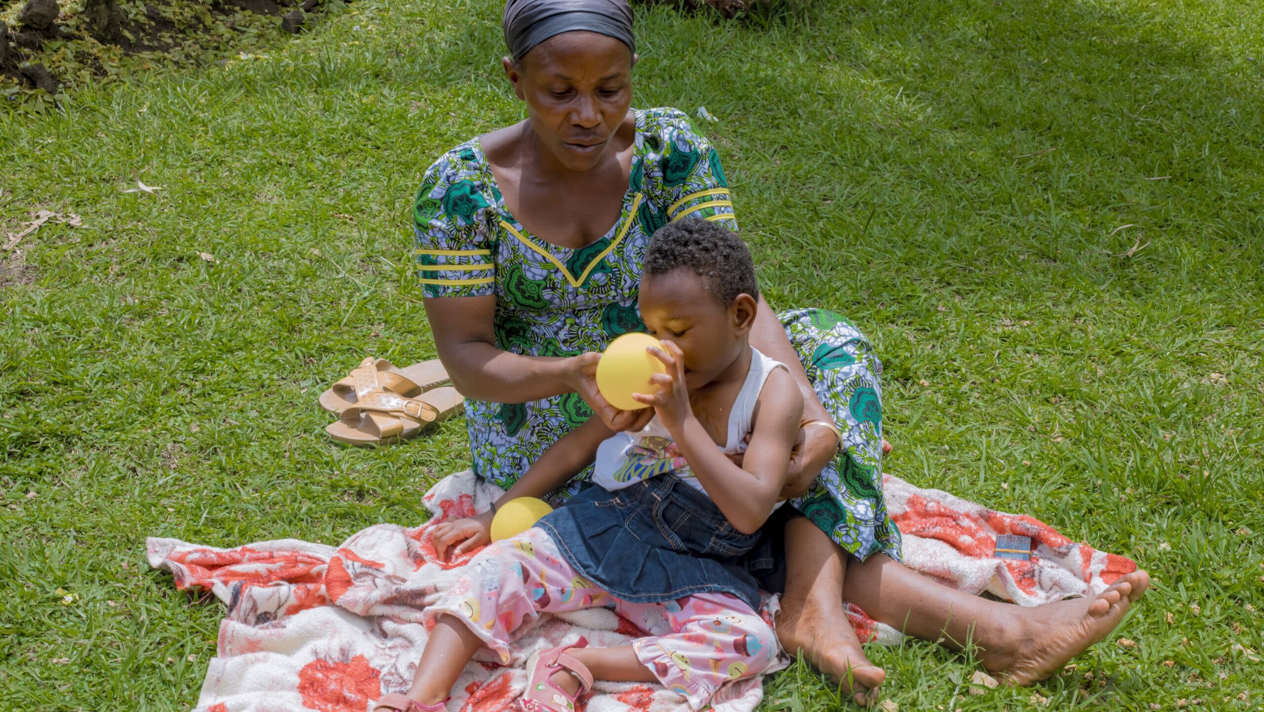 Over time, Doris started to improve, she could sit and keep her balance for the first time ever. She could communicate with Mukamuhire using easy signs: a tap for “yes,” a turn of the hand for “no,” and a soft clap when her brothers made her smile. She got regular medicine which cut her seizures, and better meals which gave her the nutrition she needed.